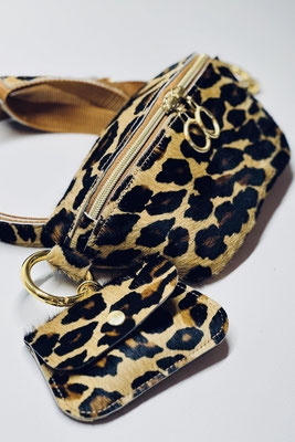 Das Gurtband Zeus wird immer passend zur Tasche mit Fell, oder Leder besetzt.